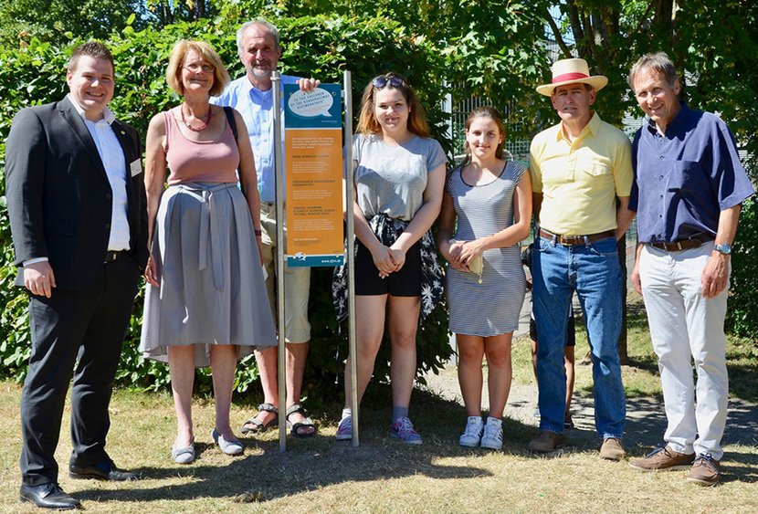 Am Nachmittag fand die Übergabe des mit neuen Spielgeräten erweiterten Spiel- und Freizeitgeländes statt. Die Spielgeräte wurden an die im Förderzentrum Kinderheimat Kleingartach lebenden und hier zur Schule gehenden Kinder und Jugendlichen übergeben. Eine Tafel mit den Namen der Spenderinnen und Spender sowie eine Widmung einer ehemaligen Mitarbeiterin (1966) und heute in den USA lebenden Spenderin, Frau Irene Adamczik Fischer, wurde dabei enthüllt: „A gift to the children of the Kinderheimat Kleingartach“.
