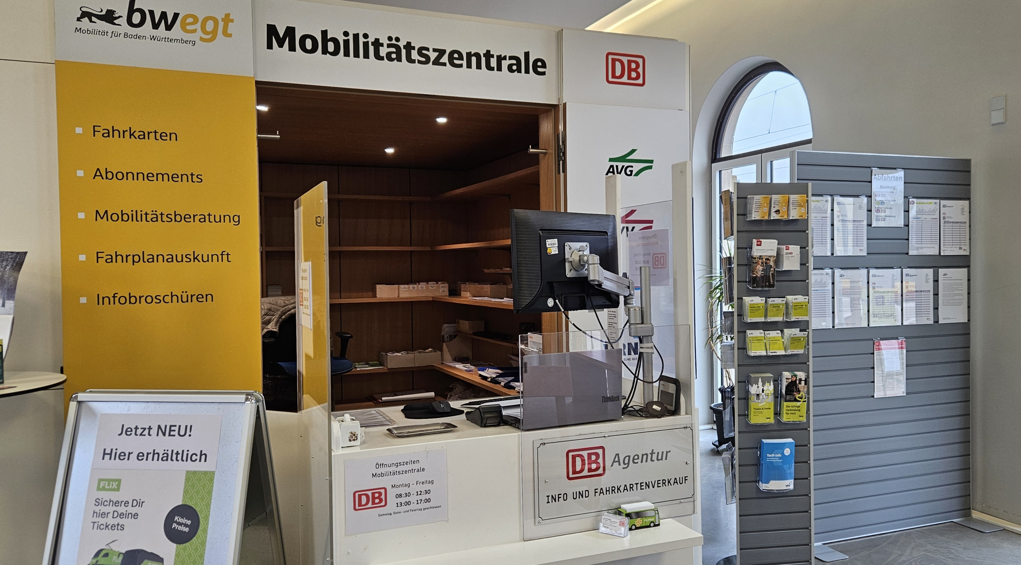 An unserem Schalter können Sie Fahrkarten für den Nah- & Fernverkehr erwerben und werden in allen Fragen ihrer Bahnreise gerne beraten.